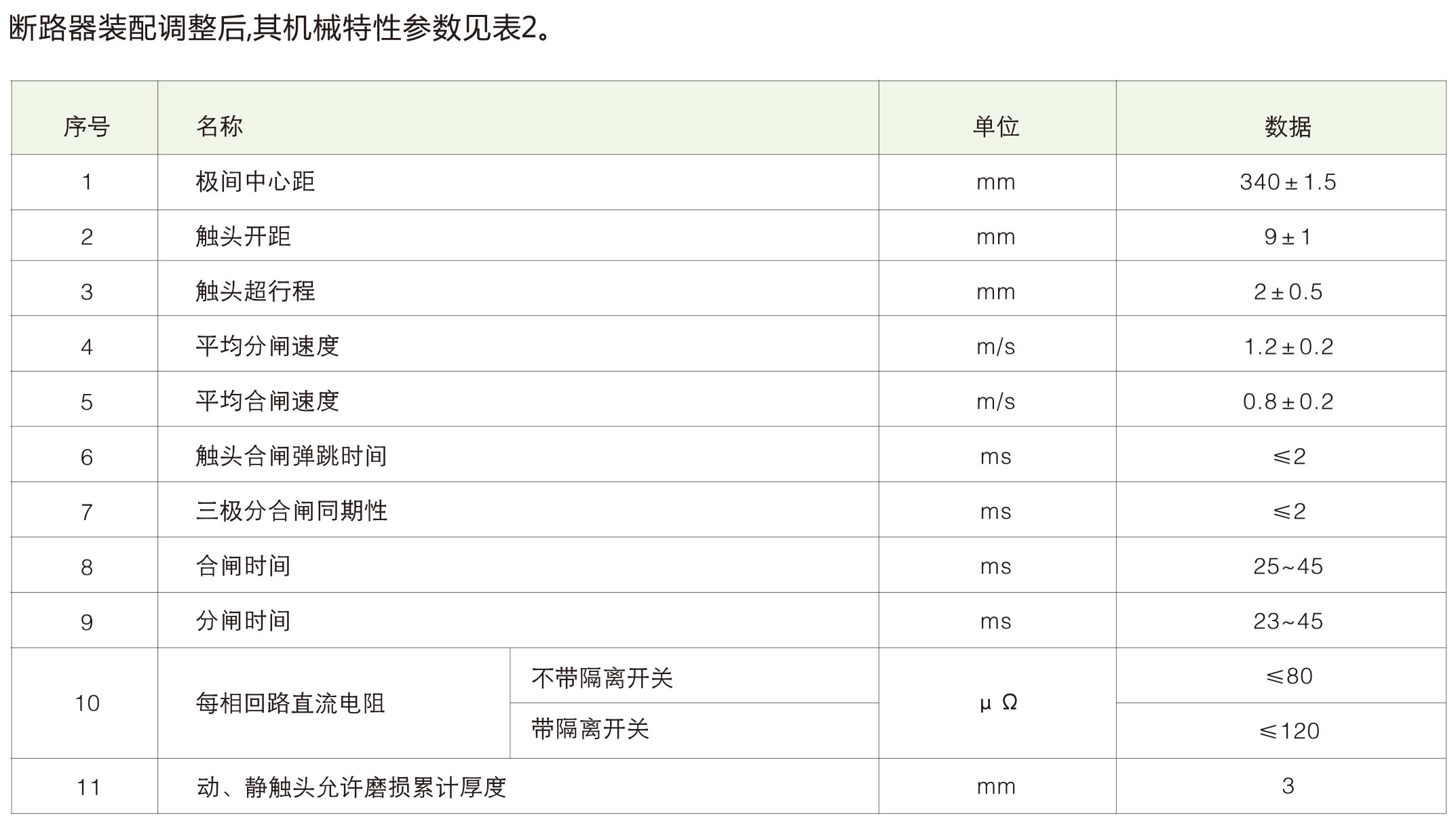 • Mechanical performance parameters